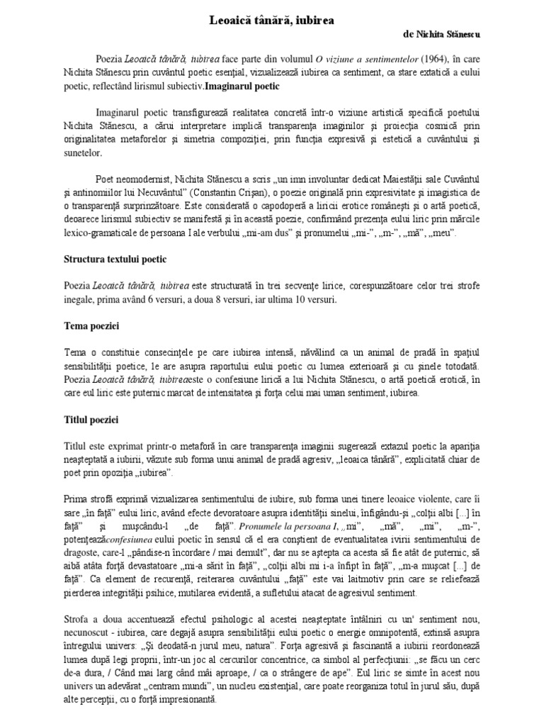 Poezia leaica tânara iubirea face parte din al doilea volum al lui nichita stanescu, o viziune a sentimentelor (1964), volumul ce are ca tema iubirea ca stare de certitudine. O mare parte din materialul poetic. Acesta joaca in epoca dintre cele doua razboaie modiale rolul pe care t. Mod de a vedea, de a concepe lucrurile; 2,877 отметок «нравится», 4 комментариев — feli din poveste (@felidonoseofficial) в instagram: