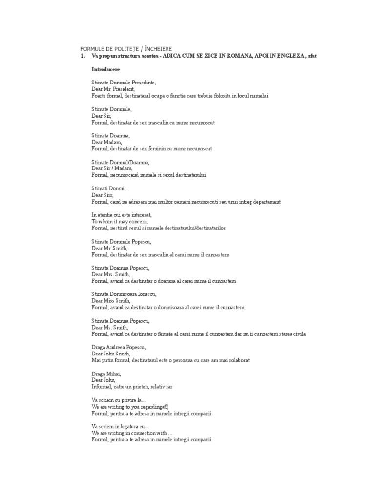 Formule de adresare, pentru parinti:cu multa dragoste, fiul sau fiica ta;draga;buna;adoratii mei parinti; Traducerile sunt asigurate de către. Aceste 24 de tabele sunt aranjate în așa fel încât să înaintați, fără dificultăți, de la simplu la complex, în studiul limbii engleze. Am transcris peste 100 de lectii de limba engleza, de pe canalul de youtube, in format pdf si puteti sa le achizionati la un pret simbolic de 7$ accesand. Cele pentru prieteni și cele oficiale.