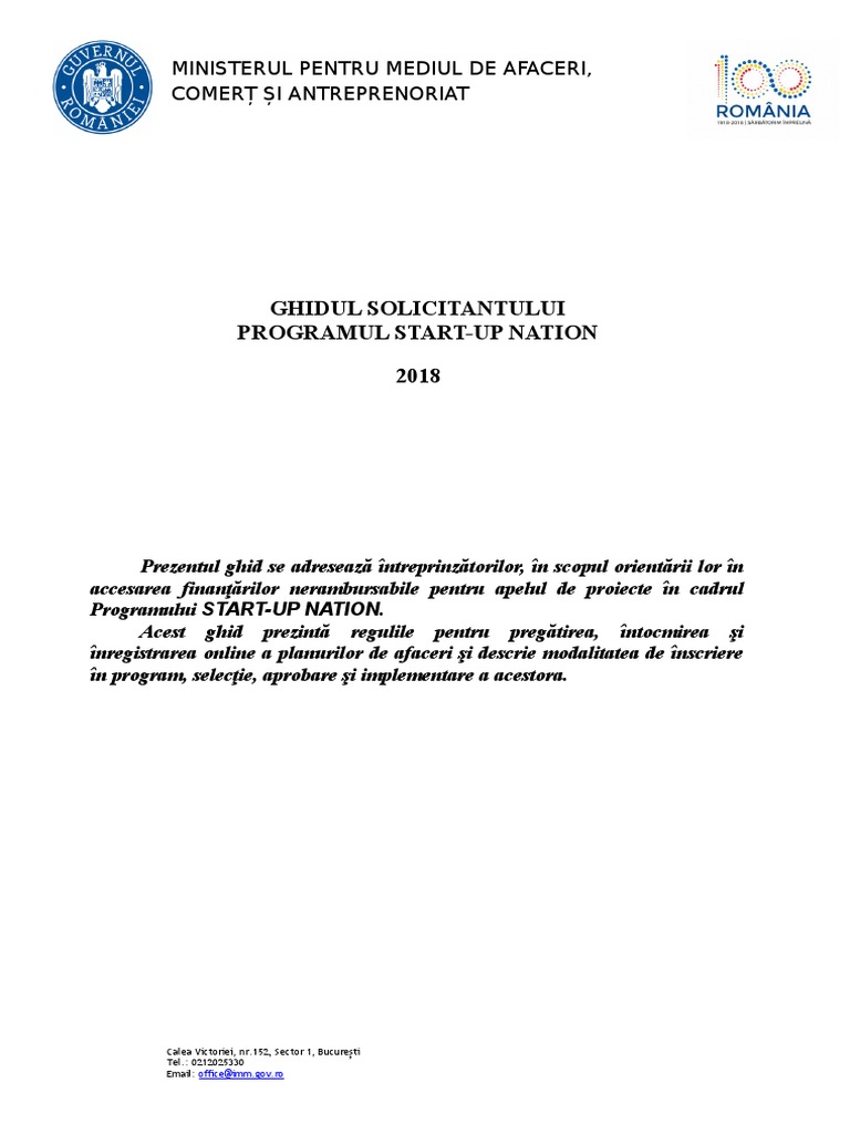 Acest ghid prezintă regulile pentru pregătirea, întocmirea şi înregistrarea online a planurilor de afaceri şi descrie modalitatea de. Proiect ghidul solicitantului start up nation 2018 meema mediul de afaceri. Obiectivul principal al schemei de minimis îl constituie stimularea înființării și dezvoltării întreprinderilor mici și mijlocii și îmbunătățirea performanțelor.